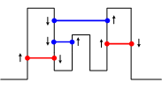 (C) Layout of the stems in the lower halfplane to ensure that their backbone direction change from up to down. The stems in the upper halfplane are simply marked with arcs without considering the backbone direction.